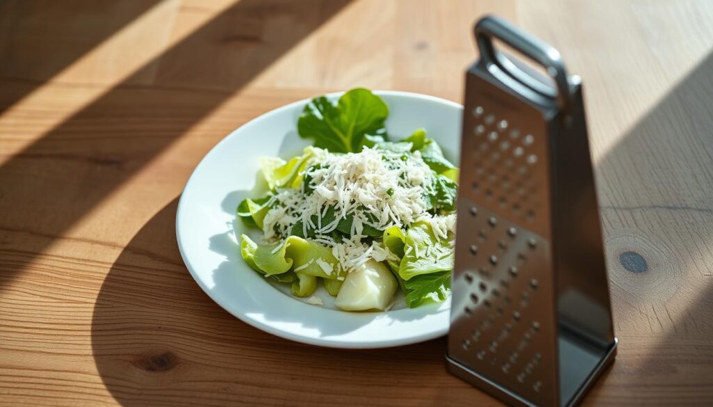 Choosing between grating and shaving cheese depends on what you like. Both ways can make a tasty salad. The key is to find what works best for you and your Caesar salad recipe. With practice and trying different things, you can make a salad that tastes great and looks good, with just the right amount of cheese17.